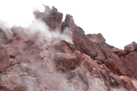翌朝、恵山に登る。噴火口コース(距離900m程度)と頂上コース(距離2km程度)の両方に行ってみる。噴煙の上がっている目の前まで行けて大満足。いろんな岩があり、600m程度の山では見られないような植生で非常に興味深い。