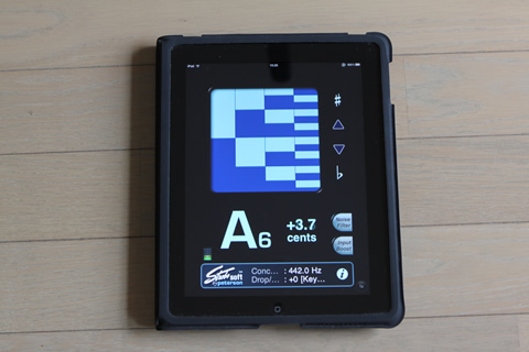 iPadで使用すると超巨大なチューナーになりますが・・・。使ってみて非常に良い。反応も速いし、不足を感じることは何もない。iPhoneやiPadをお使いの方は非常にお勧めです。iStroboSoftというアプリです。