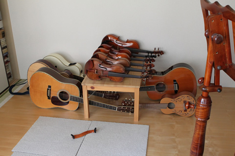 月曜日は久しぶりに1日中お休み(^^)。楽器たちも久しぶりに一日中お休み。アコースティック楽器たちは風に当たってゴロゴロ(ケースを干しているためです)。