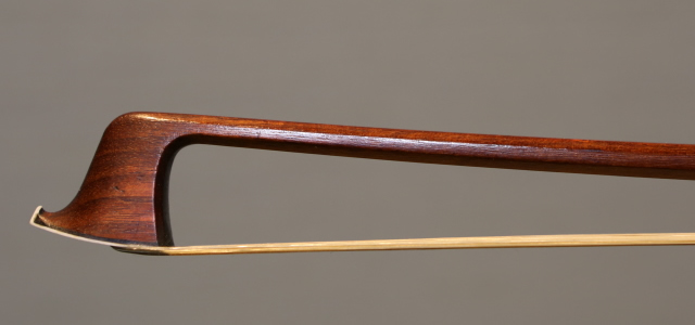 自宅に持って帰って弾いてもやはり良い。まだ松脂がなじんでいないのに嬉しくなるほどスルスルと音楽が出てくる。低音も強いし、高音も感動的(やや自己陶酔するタイプの弓)。スピッカートもサルタートも自在。見た目にも良いし、弓自体のコンディションも子細に観察しても紫外線ライトでみても修復歴は見あたらない。