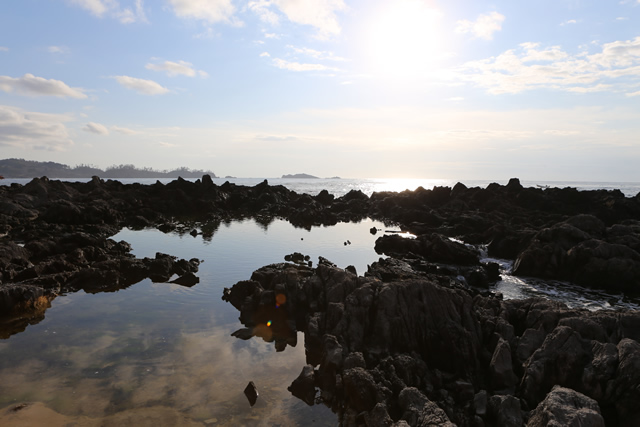 岩の隙間に海水が通るのか水が吹き上げられたり、水位が違ったり
