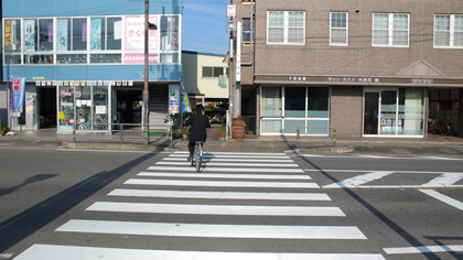 最初の信号(高雄福塚。まんが喫茶ハムスターのある交差点)を右折。徒歩の場合は、道路を渡り右折。