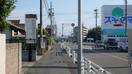 道路(県道64号線:江南〜犬山を結ぶ道路)を隔てて右手側にガスト、いちい信用金庫、ドラッグスギヤマ扶桑店を見ながら直進する。