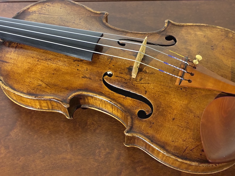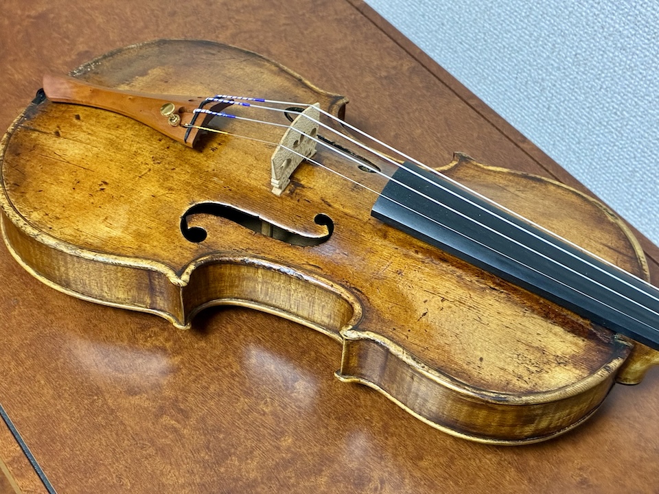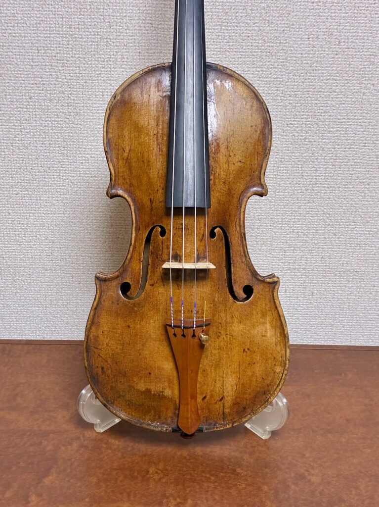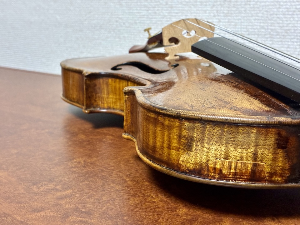 Interesting violin(こういう表記はTarisioなどのオークションでもなされ「作者不明だが興味深いヴァイオリン」の意味)として展示販売されていたオーラを感じるヴァイオリン(良い楽器は輝いて見えると言うか何かを発している。非科学的だが多くの人が言及すること)。弾いてみると異常に音が良い。しかも安い。