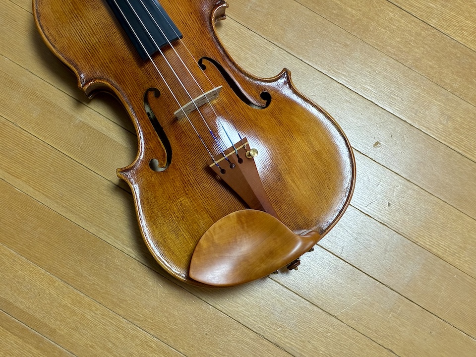この顎当てでかなり音の印象が変わるが(顎当てはかなり音を変えるのです。自分的にはクローソンの評価が高いがテンペルも有名な高級フィッティングパーツメーカー)、それに合わせてペグやアジャスターの潤滑具合も変えて(こういうことでも音色は少なからず変わる)、駒の位置や角度も調整して(もちろんこれでも音色は大きく変わる)、きちんと評価できるように。新しい刺激楽しいね^^